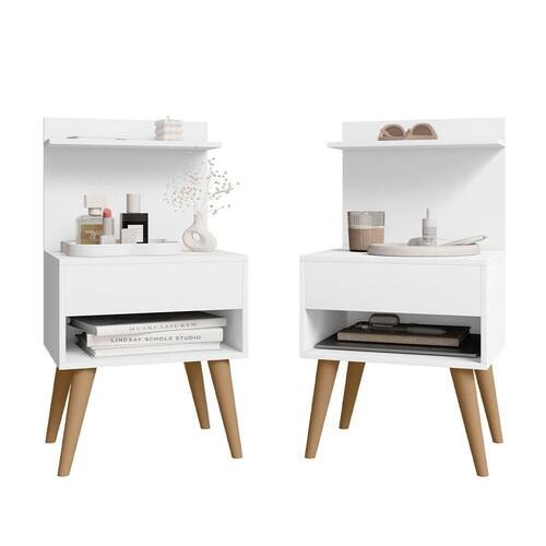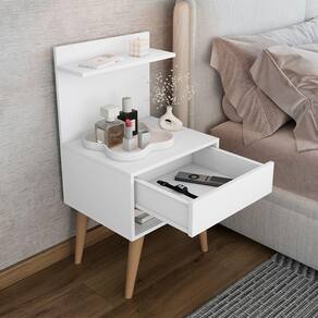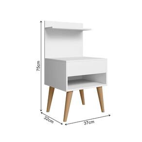 AS IMAGENS SÃO MERAMENTE ILUSTRATIVAS E PODEM SOFRER VARIAÇÕES DE COR E PEQUENOS DETALHES DE ACORDO COM O SEU MONITOR, ILUMINAÇÃO DO AMBIENTE E ATÉ MESMO A SUA PERCEPÇÃO 2 Mesinhas de Cabeceira Moderna com Gaveta e Prateleira Kosovo Branco