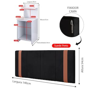 Com um design moderno e funcional, este conjunto combina sofisticação e praticidade, proporcionando conforto e estilo ao seu lar. As mesas de cabeceira são ideais para otimizar o espaço, facilitando a organização de objetos pessoais. A cabeceira, por sua vez, adiciona um toque de requinte e modernidade, destacando-se pelo seu tecido macio que eleva o conforto.