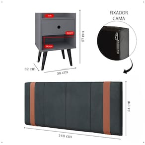 Com um design moderno e funcional, este conjunto combina sofisticação e praticidade, proporcionando conforto e estilo ao seu lar. As mesas de cabeceira são ideais para otimizar o espaço, facilitando a organização de objetos pessoais. A cabeceira, por sua vez, adiciona um toque de requinte e modernidade, destacando-se pelos detalhes laterais em corino que elevam a decoração do ambiente.