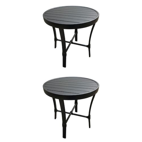 AS IMAGENS SÃO MERAMENTE ILUSTRATIVAS E PODEM SOFRER VARIAÇÕES DE COR E PEQUENOS DETALHES DE ACORDO COM O SEU MONITOR, ILUMINAÇÃO DO AMBIENTE E ATÉ MESMO A SUA PERCEPÇÃO VISUAL.Kit 2 Mesinhas Ripada Redonda DiÃmetro De 0.50m AlumÃnio Preta