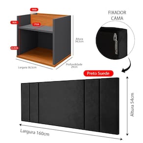 A Cabeceira Luana oferece um toque de requinte ao ambiente, enquanto as mesas de cabeceira suspensas são perfeitas para otimizar o espaço, facilitando a organização e a limpeza.