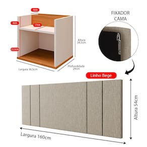 A Cabeceira Luana oferece um toque de requinte ao ambiente, enquanto as mesas de cabeceira suspensas são perfeitas para otimizar o espaço, facilitando a organização e a limpeza.