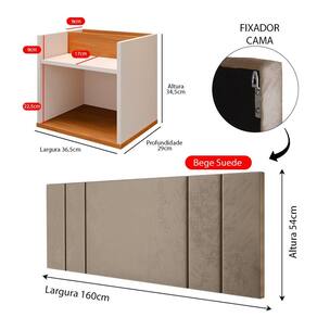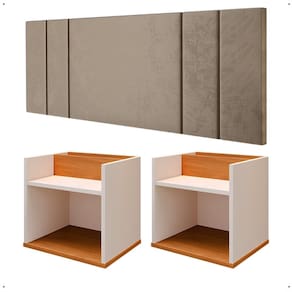 A Cabeceira Luana oferece um toque de requinte ao ambiente, enquanto as mesas de cabeceira suspensas são perfeitas para otimizar o espaço, facilitando a organização e a limpeza.