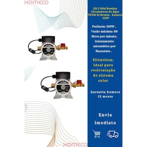 Kit 2 Mini Bombas Circuladoras De Água TP120 G1 Bronze - Komeco - 220V