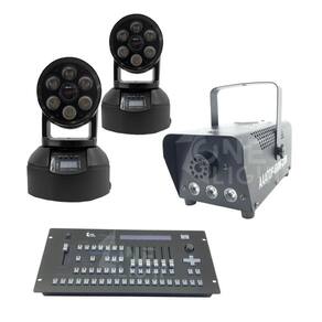 Kit 2 mini moving wash + máquina de fumaça 600w + mesa pilot