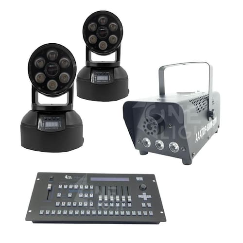 Itens inclusos: 02 mini moving wash led 60w rgbw + 6 leds 8w yg-112 + 01 máquina de fumaça 600w xw 600-z 22v + 01 mesa controladora pilot 2000 dmx one light