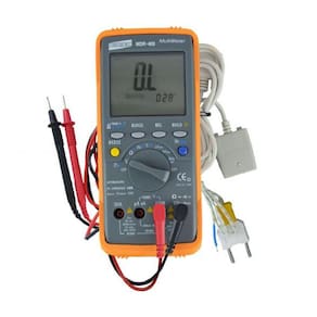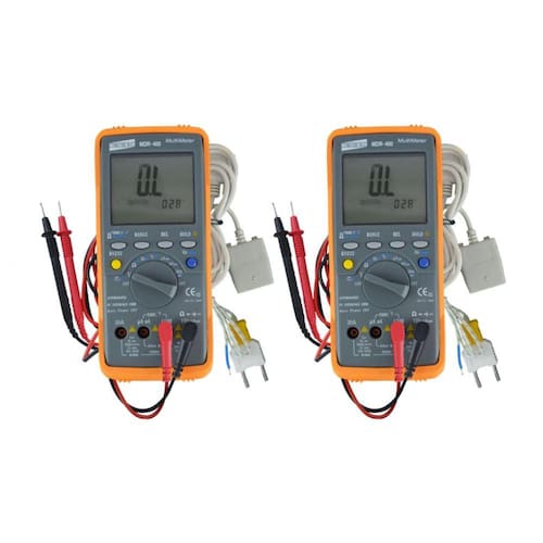 KIT 2 MULTÍMETRO DIGITAL PORTÁTIL COM RS-232 E INDICAÇÃO VISUAL MOD. MDR-400 DESCRIÇÃO: Multímetro digital portátil com rs-232 e indicação visual mod. mdr-400 ESPECIFICAÇÕES TÉCNICAS: Display duplo de cristal líquido (LCD) com 3 ½ dígitos com Iluminação e Indicação máxima de 4000 Categoria: CAT III - 1000V TRUE RMS Escalas: Tensão DC: 400mV, 4V, 40V, 400V, 1000V Resolução: 0,1mV, 1mV, 10mV, 100mV, 1V Precisão: 400mV: ±0,5% de leitura ±2 dgts 4V, 40V, 400V: ±1,2% de leitura ±2 dgts 1000V: ±1,5% de leitura ±2 dgts Tensão AC: 400mV, 4V, 40V, 400V, 750V Resolução: 0,1mV, 1mV, 10mV, 100mV, 1V Precisão: 400mV: ±2,0% de leitura ±30 dgts 4V, 40V, 400V: ±0,8% de leitura ±3 dgts 750V: ±2,0% de leitura ±4 dgts Corrente DC: 400µA, 4000µ, 40mA, 400mA, 20A Resolução: 0,1µA, 1µA, 10µA, 100µA, 10mA Precisão: 400m, 4000m, 40mA, 400mA: ±1,5% de leitura ± 3 dgts 20A: ±2,5% de leitura ±5 dgts Corrente AC: 400µA, 4000µ, 40mA, 400mA, 20A Resolução: 0,1µA, 1µA, 10µA, 100µA, 10mA Precisão: 400m, 4000m, 40mA, 400mA: ±1,8% de leitura ± 5 dgts 20A: ±3,0% de leitura ±7 dgts Resistência: 400?, 4?, 40?, 400?, 4M?, 40M? Resolução: 0,1?, 1?, 10?, 100?, 1k?, 10k? Precisão: 400?: ±1,2% de leitura ±4 dgts 4?, 40?, 400?, 4M?: ±1,0% de leitura ±2 dgts 40M?: ±2,0% de leitura ±3 dgts Capacitância: 40nF, 400nF, 4mF, 40mF, 100mF Resolução: 10pF, 0,1nF, 1nF, 10nF, 0,1µF Precisão: 40nF: ±5,0% de leitura ± 7 dgts 400nF, 4mF, 40mF: ±3,5% de leitura ±5 dgts 100µF: ±5,0% de leitura ±5 dgts Freqüência: 9,999Hz, 99,99Hz, 999,9Hz, 9,999kHz, 99,99kHz, 999,9kHz, 9,999MHz- Resolução: 0,001Hz, 0,01Hz, 0,1Hz, 1Hz, 10Hz, 100Hz, 100Hz, 1kHz Precisão: 9,999Hz, 99,99Hz: ±1,2% de leitura ±5 dgts 999,9Hz, 9,999kHz, 99,99kHz, 999,9kHz: ±1,2% de leitura ±3 dgts 9,999MHz: ±1,5% de leitura ±4 dgts Ciclo de trabalho (Duty Cycle): 0,1% a 99,9% Resolução: 0,1% Precisão: ±1,2% de leitura ±2 dgts Temperatura: -20° a 1000°C (-4° a 1832°F) Resolução: 0,1°C/°C (0,1°F/°F) Precisão: ±3% de leitura ±3°C/°F Diodo: 0,3mA Resolução: 1mV Precisão: ±10% de leitura ±5 dgts Categoria de sobre tensão: CAT III Interface serial RS-232: Software compatível com windows 95/98/2000 Escala de medição: 2 vezes por segundo, nominal Teste de diodo, continuidade audível e capacitância Polaridade: Automática, (-) indicação de polaridade negativa Data Hold: Congela a leitura no display Indicação de sobre escala: "OL" é exibido no display Indicação de bateria fraca: O símbolo da bateria é exibido no display Desligamento automático: 10 minutos Temperatura de operação: 0° a 50°C (32° a 122°F) Umidade de operação: <70% UR Temperatura de armazenamento: -20° a 60°C (-4° a 140°F) Umidade de armazenamento: <80% UR Categoria de Segurança: CAT-II 1000V Alimentação: 1 bateria de 9V Dimensões: 197 x 88 x 41mm Peso: 635g (incluindo holster) ACESSÓRIOS FORNECIDOS: 2 - Multímetro MDR-400 2 - Par de pontas de prova 2 - Bateria de 9V 2 - Cabo RS-232 2 - Software 2 - Holster 2 - Sensor de temperatura S-02 Manual de instruções