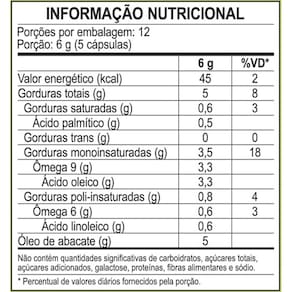 Óleo de abacate 60 cápsulas 1200mg - unilife O óleo de abacate unilife é um suplemento em cápsulas à base de óleo de abacate, que por sua vez é rico em gorduras do bem, como o ácido oleico ômega 9 , luteína, vitaminas e minerais. Além disso, é enriquecido com 4 vitaminas lipossolúveis a, d, e, k , que melhoram a absorção do produto. Benefícios do óleo de abacate: Contém ingredientes naturais; Oferece 100% da recomendação de ingestão diária de vitamina e em apenas uma porção; Oferece 50% da recomendação de ingestão diária das vitaminas a, d e k em apenas uma porção; Fácil e prático para o consumo; Modo de usar: Sugere-se a ingestão de 2 a 4 cápsulas ao dia, após a principal refeição. Ingerir com líquido. Ingredientes: Óleo de abacate, gelatina e umectante glicerina. Marca: Não Informado Ean: 7908609508121