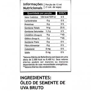 você sabia que a nossa conhecida uva, além de ser um delicioso e saboroso fruto, produz sementes cujas aplicações para a saúde são amplas e extremamente benéficas? conheça o óleo de semente de uva, um óleo vegetal prensado à frio, engarrafado e lacrado que pode ser utilizado nos mais variados pratos, dando um toque especial e delicioso às suas receitas favoritas! rico em ômega 6 e vitamina e, o óleo de semente de uva atua na diminuição do colesterol ruim (ldl), reduzindo os riscos de doenças cardiovasculares, ao mesmo tempo em que trabalha como um poderoso antioxidante natural, protegendo o corpo dos danos provocados pelos radicais livres e barrando o envelhecimento precoce da pele.