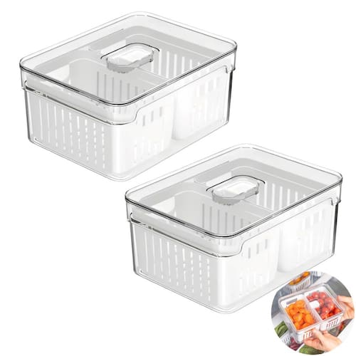 O organizador de geladeira Clear Fresh com cesto duplo 2,2L promove frescor prolongado para os alimentos, para uma rotina mais saudável e sem desperdícios. O sistema de ventilação mantém o nível de umidade ideal para cada alimento. A armazenagem com cestos evita que as frutas, verduras e legumes fiquem molhados após a lavagem, aumentando a durabilidade dos alimentos.