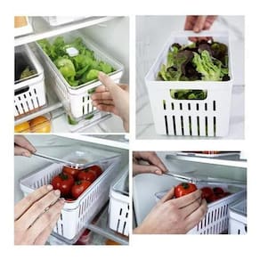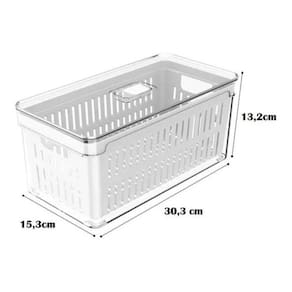 Kit 2 Organizador De Geladeira Porta Frutas Verduras Legumes F6039 MAPLE DECOR Kit 2 Unidades de Organizador De Geladeira com cesto Ventilação e Humidade controlada Organização e otimização de espaço Com Cesto Removível Drenagem Com o organizador de geladeira Clear Fresh, você terá organização e irá conservar e manter o frescor de seus alimentos por mais tempo, a tampa com ventilação ajustável mantém o nível de umidade ideal para cada tipo de alimento, mantendo-os frescos por mais tempo. Possui cesto que auxilia na lavagem e impede que a umidade acumulada se mantenha no alimento, evitando o murchamento e deterioração. Especificações Dimensões totais: 30,3cm C x 15,3cm L x 13,2cm A Dimensões do Cesto: 29,5cm C x 14,3cm L x 12cm A Cor: Natural e Branco Peso: 554g Material Cesto - POLIPROPILENO : Material com alta resistência a impactos e ao calor. Não transfere odor, nem gosto aos alimentos. Atóxico, pode entrar em contato com alimentos. Resistência à água fervente, suportando até 150 C. Material Organizador - POLIENTIRENO : Material translúcido. Ótima transparência e alto brilho. Não transfere odor, nem gosto aos alimentos. Atóxico, pode entrar em contato com alimentos. CUIDADOS : Não utilizar em micro-ondas e lava louças. Lavar com sabão neutro, não utilizar material abrasivo ou álcool na limpeza.
