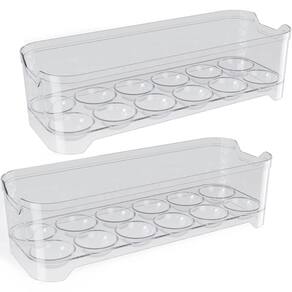 Kit 2 Organizadores de Geladeira Porta Ovos 12un 28x10x7,5cm cada Transparentes Plástico UZ.