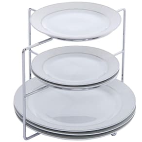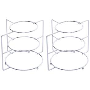 Kit 2 Organizadores Suporte para Pratos 3 Níveis Cromado Divisor Armário Prateleira Dispensa