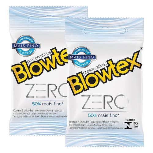 O Kit contém: 2 Pacotes Preservativo Blowtex Zero com 3 uniidades cada.