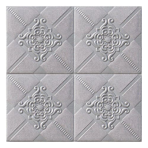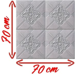 Conteúdo da Embalagem: - 2 Painéis 3D Auto Adesivo Ladrilhos Prateados 70x70cm; Este kit cobre uma área de 1,40m X 0,70m;