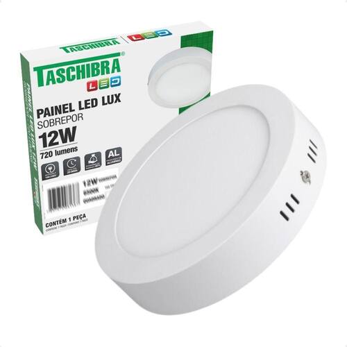 Kit 2 Painel de Led Redondo Sobrepor 12W Bivolt Taschibra 3000K Quente