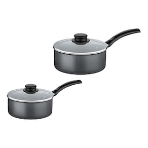 Conteúdo do kit: 1 - panela 16 cm com tampa de vidro; 1 - panela 18 cm com tampa de vidro.