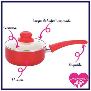 - Espessura: 1.8mm - Material: Alumínio com revestimento cerâmico - Marca: Class Home - Cor: Vermelho - Conteúdo: 2 Panelas