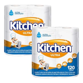 O kit contém: 2 rolos de Papel Toalha Kitchen Ultra com 120 Folhas cada.