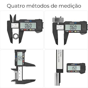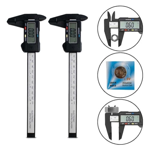 Contém: 02 - Paquímetro Digital 02 - Estojo para armazenar 04 - Baterias (uma contida no paquímetro e uma para troca)