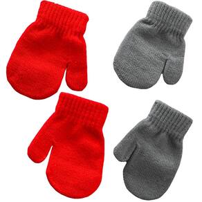 Kit 2 Pares Luva para Bebê 13x10cm Cinza/Vermelho -