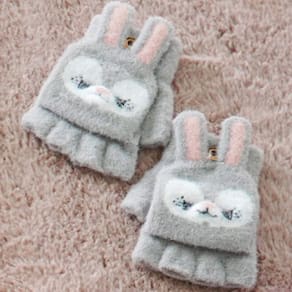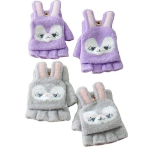 Kit 2 Pares Luva sem Dedo Infantil 16cm Coruja Cinza/Coruja Roxa -