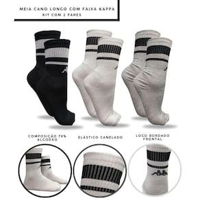 CARACTERISTICAS: - Marca: Kappa - Indicado: Dia a Dia / Esportivo - Composição: 78% Algodão, 10% Poliamida, 6% Elastano, 6% elastodieno - Categoria: Adulto - Tamanho: 39-44