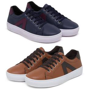 Kit 2 Pares Sapatênis Masculino Casual Ajuste Em Elástico - 43 - Azul Marinho