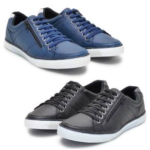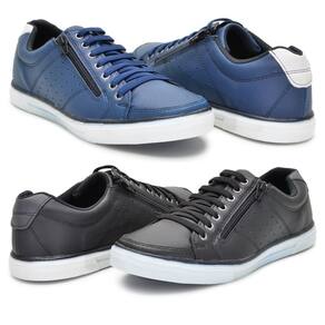 Kit 2 Pares Sapatenis Masculino Ziper Cadarço Confortável - 38 - Azul Marinho