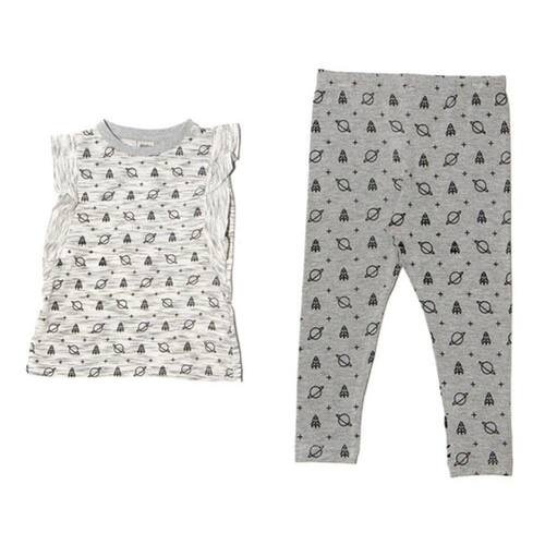 Calça de bebê em malha viscose com stretch. É super confortável e macia, tem elástico na cintura e estampa de planetinhas e foguetes. Uma alegria só!