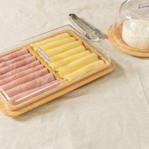 Aspen Decor F6387 Kit 2 peças Mesa Posta Porta Frios e Porta Queijo OU Bambu O Porta frios duplo transforma a experiência de servir à mesa, para uma rotina com mais conforto e conexão com o lar. O mix de materiais agrega funcionalidade e personalidade ao ambiente. A base de bambu promove a sustentabilidade de um material 100% renovável, e traz sofisticação para decorar a sua casa. A Linha Sense ressignifica o ato de servir e valoriza os pequenos momentos, trazendo elegância e bem-estar para a sua casa do café da manhã ao jantar. A Queijeira transforma a experiência de servir à mesa, para uma rotina com mais conforto e conexão com o lar. O mix de materiais agrega funcionalidade e personalidade ao ambiente. A tampa de bambu promove a sustentabilidade de um material 100% renovável, e traz sofisticação para decorar a sua casa. A Linha Sense ressignifica o ato de servir e valoriza os pequenos momentos, trazendo elegância e bem-estar para a sua casa do café da manhã ao jantar. Porta Frios Altura 5.5cm Largura 26.5cm Profundidade 18cm Peso 360g Material Bambu Porta Queijo Altura 10.5cm Largura 16cm Profundidade 16cm Peso 190g Material Bambu Aviso Importante: -as cores dos produtos podem variar entre as imagens mostradas acima ou fotos da embalagem de acordo com calibragem de seu monitor ou smartfone'. ATENÇÃO: - Os objetos que ambientam as fotos não acompanham o produto. Imagens meramente ilustrativas. Observação: - Atenção ao tamanho do produto, ele é um encanto E como descrito acima. Confira as dimensões do produto no momento da compra e se certifique de que é o produto que deseja comprar. Marca: Não Informado Ean: 7796192642793
