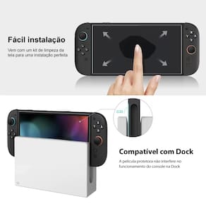 O corte é preciso a laser, garantindo encaixe perfeito de ponta a ponta na tela do Switch 2, sem atrapalhar o toque, a sensibilidade ou a qualidade de imagem. Além disso, a espessura de apenas 0,33 mm permite compatibilidade total com o Dock, sem interferir no uso.