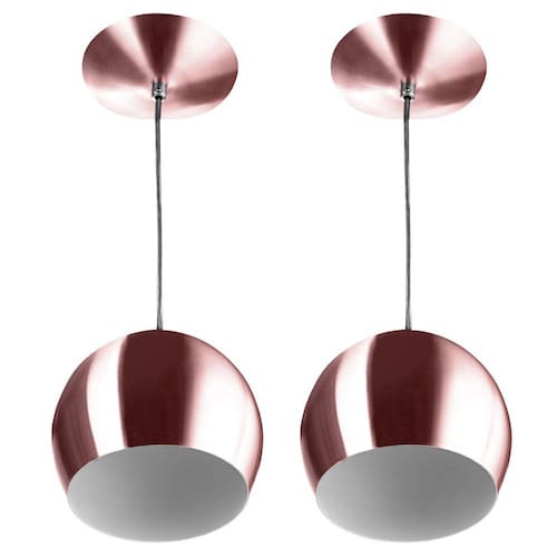 Kit 2 Pendente Bola Pequena Gold Rose Sala Cozinha Quarto