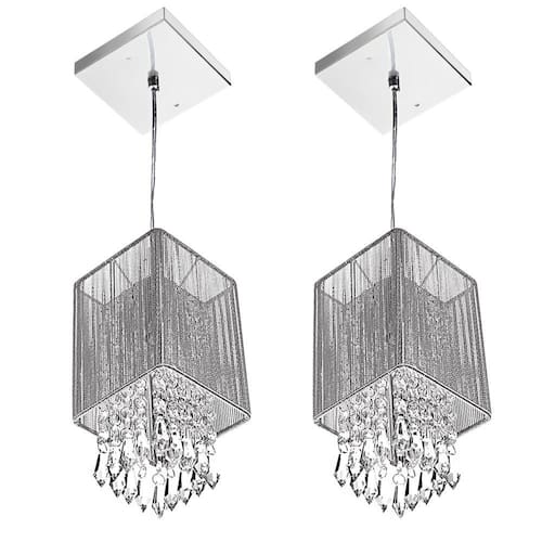 Kit 2 Pendente Cupula Quadrado ClearFio Cristal Acr. Prata