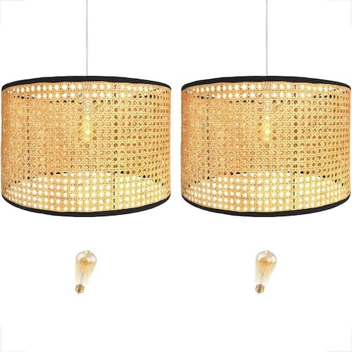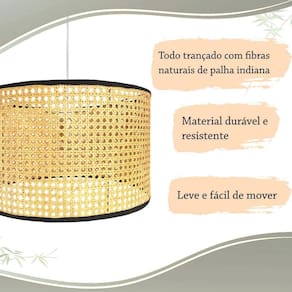 Kit 2 Pendente Fibra Natural 50X30 Palha Indiana Nat86 + Led