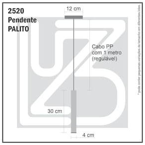 Descrição Técnica: - Modelo: PALITO - Acabamento do corpo: OURO - Lampada: 1 lâmpada LED Mini Dicroica com 3w - 2700k - Material: Alumínio Usinado - Tamanho (LxAxP): 4cm x 30cm x 4cm - Cabo: PP com 1m (regulável) - Cor do Cabo: OURO - Soquete: GU 10 - Bivolt: Sim - Canopla: Em metal com 12cm, modelo plano e trava cabo regulador do cabo. Acabamento Branco