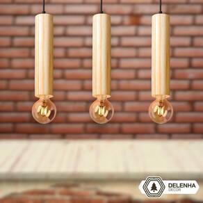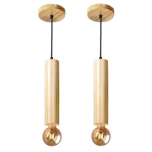 Kit 2 luminárias pendentes cilíndricos em madeira maciça