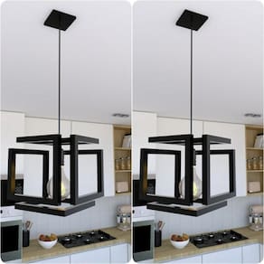 O formato do pendente proporciona uma iluminação suave e agradável, sua canopla é quadrada para harmonização da peça.
