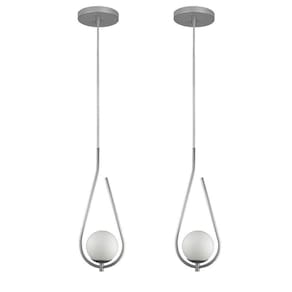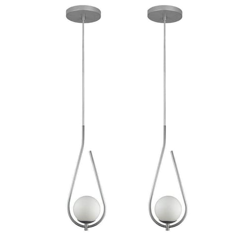 Kit 2 Pendentes Lustres On Drop Prata Globo De Vidro Branco Lustre Pendente ON DROP, design minimalista ao seu estilo. Descrição Técnica: - Modelo: On Drop - Acabamento: Pintura Térmica - Material: Aluminio e vidro - Tamanho (LxA): 16 cm x 45 cm - Globo: 12cm - Cabo: 70 cm (regulável) - Soquete: Padrão G9 - Bivolt: Sim - Canopla: 12 cm