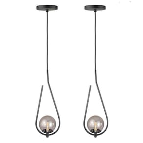 Kit 2 Pendentes Lustres On Drop Preto Globo De Vidro Fume Lustre Pendente ON DROP, design minimalista ao seu estilo. Descrição Técnica: - Modelo: On Drop - Acabamento: Pintura Térmica - Material: Aluminio e vidro - Tamanho (LxA): 16 cm x 45 cm - Globo: 12cm - Cabo: 70 cm (regulável) - Soquete: Padrão G9 - Bivolt: Sim - Canopla: 12 cm