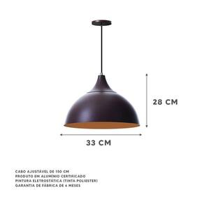 Kit 2 Pendentes Meia Lua Marrom Cobre 30Cm Chapéu Marrom - dimensões: 28x33cm - canopla redonda de 11cm de diâmetro - produto feito em alumínio - 150cm de fio ajustável - pronto para instalação - utilize a lâmpada que desejar - soquete e-27 - garantia de 6 meses contra defeitos de fabricação - produto bivolt - lâmpadas não inclusas neste produto.