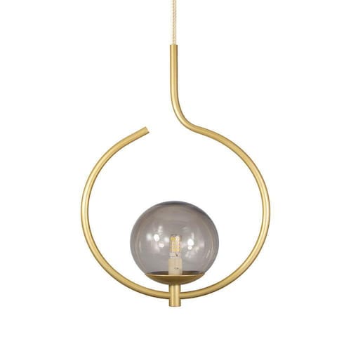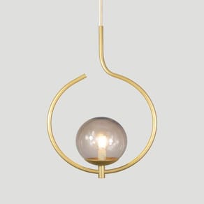 Kit 2 Pendentes On Loop Dourado Com Globo De Vidro Fume