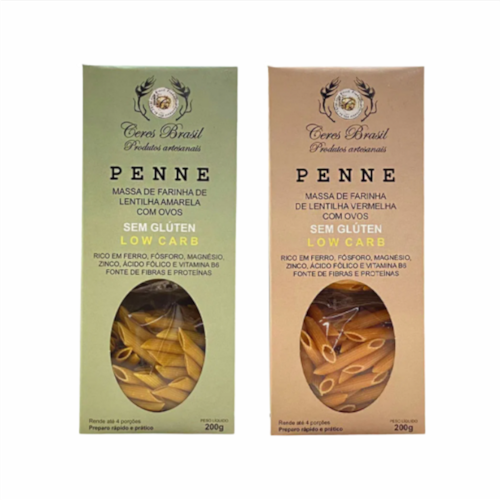 Kit com 2 Macarrões Penne de Lentilha Sem Glúten Ceres: Penne de Lentilha Vermelha e Penne de Lentilha Amarela