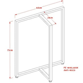 DESCRITIVOS TÉCNICOS Altura: 75cm unitário Largura: 60cm unitário Comprimento: 31cm unitário Material: Tubo de aço Tubo Metalon: 20 x 30 mm Revestimento do Aço: Pintura Eletrostática Pés/sapatas: 6 unidades Niveladores Anti-Risco Necessita de Montagem: Sim Ambiente: Escritórios/Cozinhas/Salas/Outros Peso aproximado: 6kg Peso suportado: 250kg Limpeza: Utilizar pano levemente umedecido seguido de pano seco Precauções: Evite exposição ao sol/chuva maior durabilidade do produto Garantia: 03 Mês es Marca: AmadeuS MarkeT Volume s : 01 Item s Incluso s : 02 Pés Cor Produto: Podem haver pequenas diferenças dependendo da tela de visualização Serviços: Não Disponibilizamos Serviços Montagens/Instalações/Outros sendo Inteira Responsabilidade do Cliente os custos de manuseio inadequado por escadas e/ou elevadores, guincho ou içar assim caso venha danificar o produto provenientes do mesmo. Pés De Mesa 75x60cm Mod. T Estilo Industrial Ferro Base De Mesa 75x60cm Mod. T Estilo Industrial Ferro Marca: Amadeus.Market