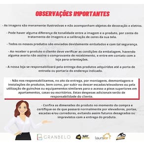 - Confira as dimensões do produto no momento da compra e certifique-se de que passará normalmente por elevadores, portas, escadas e/ou corredores, evitando assim futuros desagrados ou imprevistos com a entrega do produto.