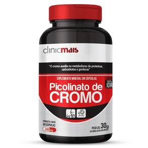 Kit 2 picolinato de cromo 500mg clinicmais 60 cápsulas ingredientes: cromo picolinato de cromo . Excipiente: amido. Antiumectante: dióxido de silício. Composição da cápsula: gelatina, opacificante inorgânico dióxido de titânio. não contém glúten. Recomendações de uso Indicação: indivíduos com idade maior ou igual a 19 anos. Sugestão de consumo: ingerir 1 cápsula ao dia. Este produto não é um . Não exceder a recomendação diária de consumo indicada na embalagem. Mantenha fora do alcance de crianças. Marca: Não Informado Ean: 7908609542422