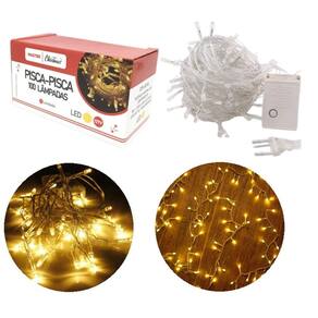 Conteúdo da embalagem: 02 unidades Pisca Pisca 100 Lâmpadas LED Branco Quente Fio Transparente 8 Funções 127V - Master Christmas