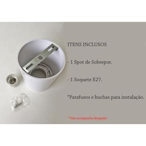 - 1 Spot de Sobrepor. - 1 Soquete E27. Parafusos e buchas para instalação.