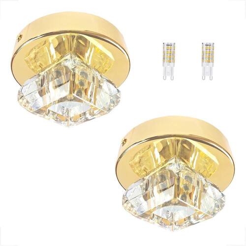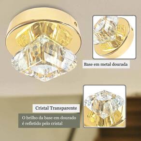 Kit 2 Plafon Spot Cristal Dourado Sobrepor Banheiro Bet46 + Led Plafon de sobrepor dourado de cristal k9