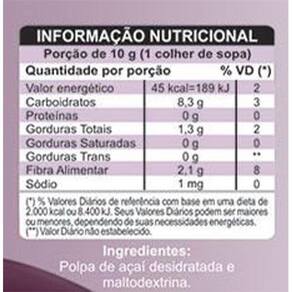 A Polpa de Açaí Desidratada em Pó 400g Unilife é um suplemento alimentar desenvolvido com ingredientes cuidadosamente selecionados para garantir qualidade e pureza. O produto contém polpa de açaí desidratada e maltodextrina, proporcionando uma opção prática para complementar a alimentação diária. A embalagem contém 400g de pó, ideal para diversas formas de consumo. Ingredientes: Polpa de açaí desidratada, maltodextrina Informações adicionais Não contém glúten Não contém lactose Produto vegano Modo de uso: Sugere-se a ingestão de 1 colher de sopa 10g ao dia, podendo ser misturada com água, sucos ou outros alimentos de sua preferência. Informação nutricional Cada porção de 10g contém 45 kcal. Armazenamento Manter em local seco e fresco, ao abrigo da luz e umidade. Após aberto, consumir dentro do prazo de validade indicado na embalagem. Marca: Não Informado Ean: 7908609507087